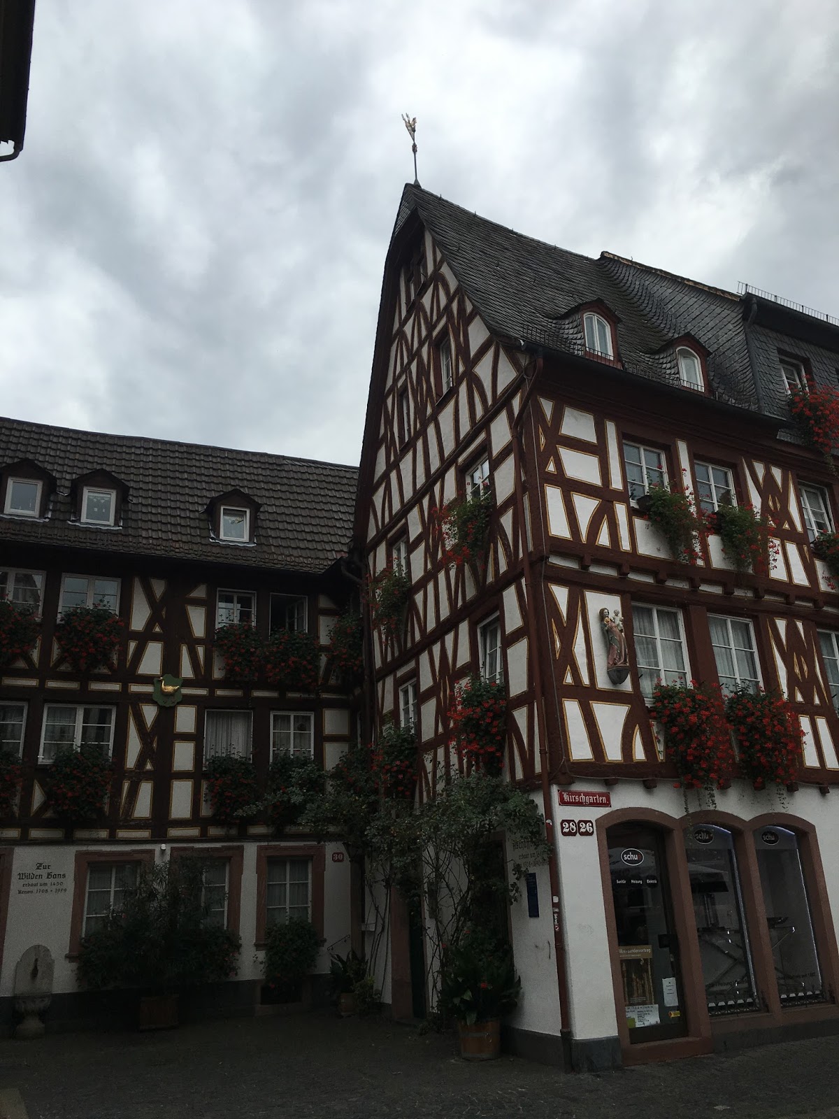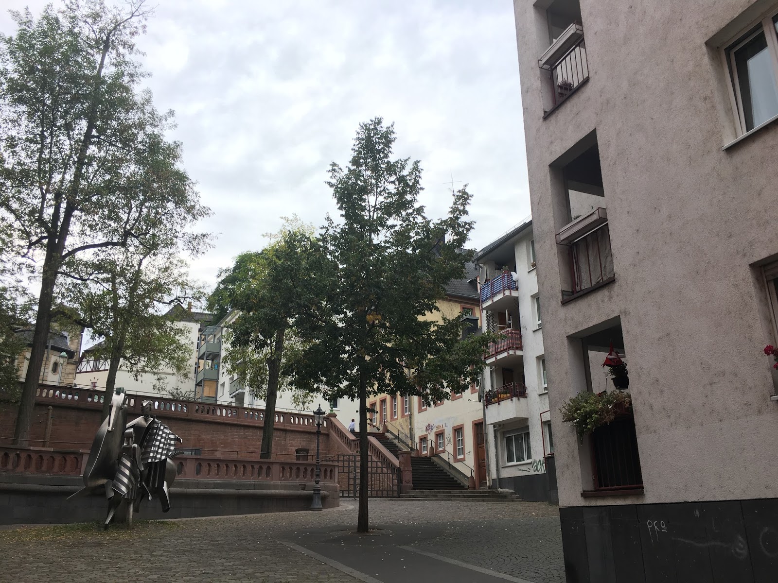 On Saturday, she brought me to Mainz, a town nearby. She showed me the castle, the old wall, and church. Yes, now I know it's the most important element in all German towns.