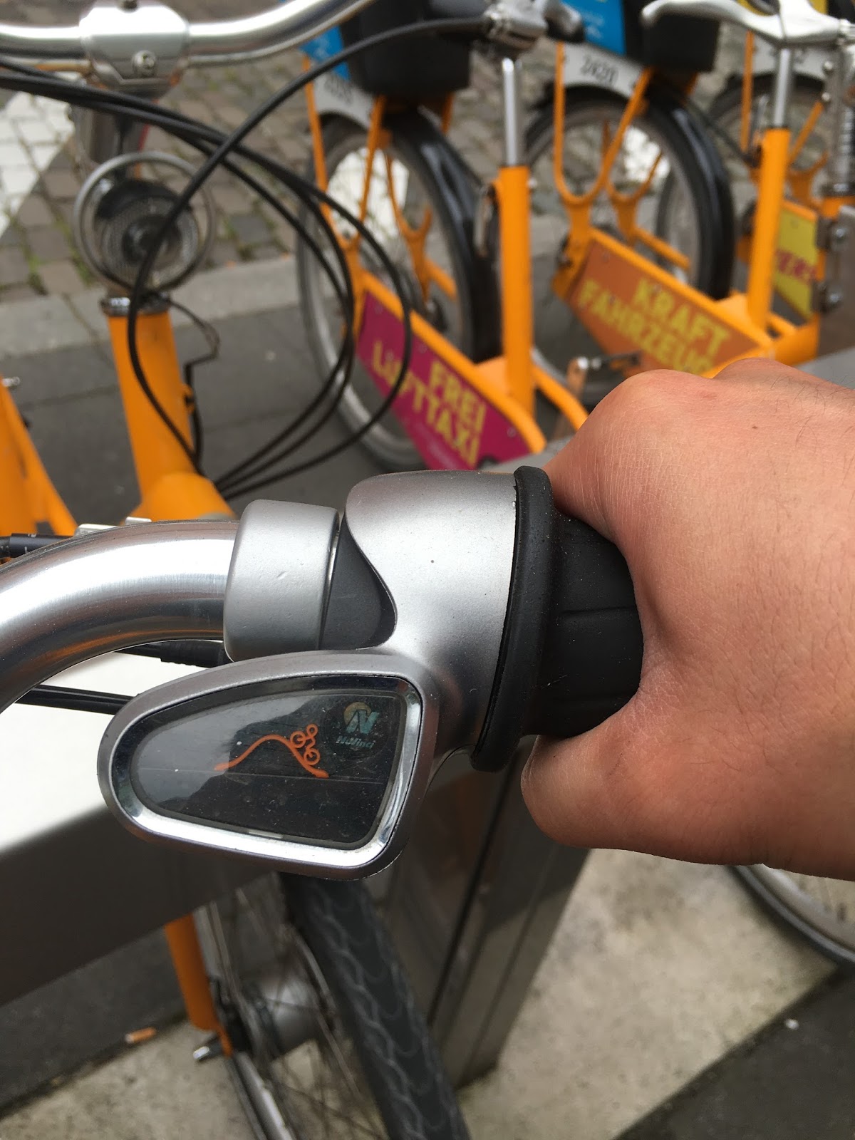 Well, something I found cool is the public bike here. The gears are not in numbers, but using a graph is really easy for people to understand, nice!