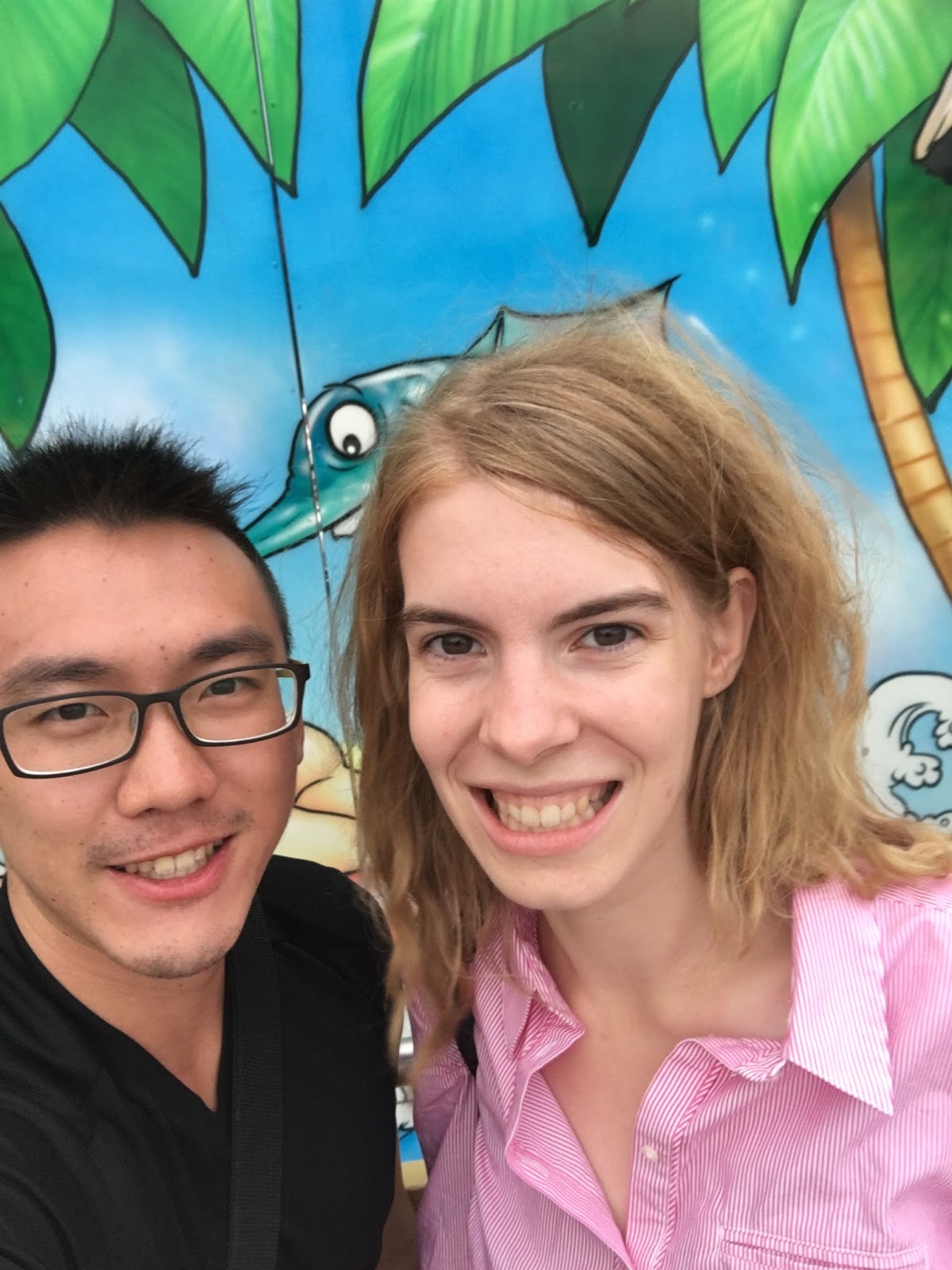 Well, one thing funny is that today is actually cloudy, but she still got a little but sunburned. Well, being too white maybe not always a good thing in this case. Otherwise, everything is really enjoying.