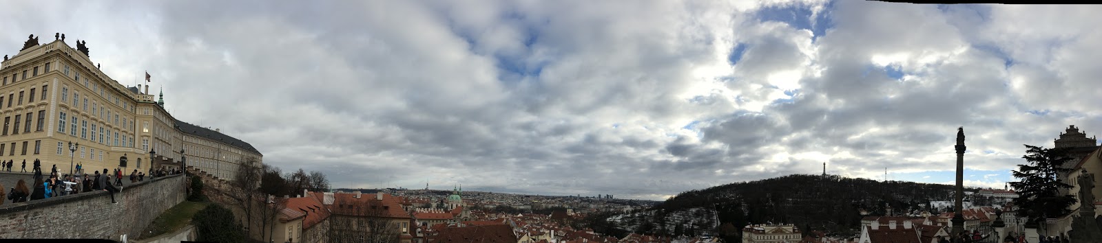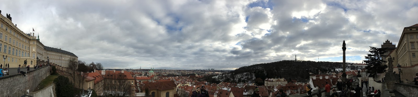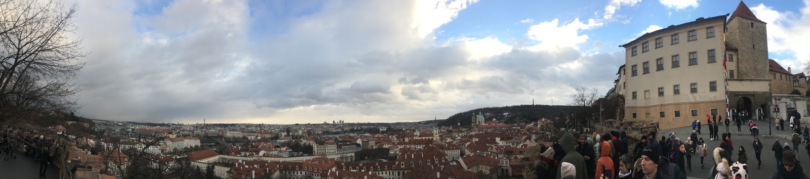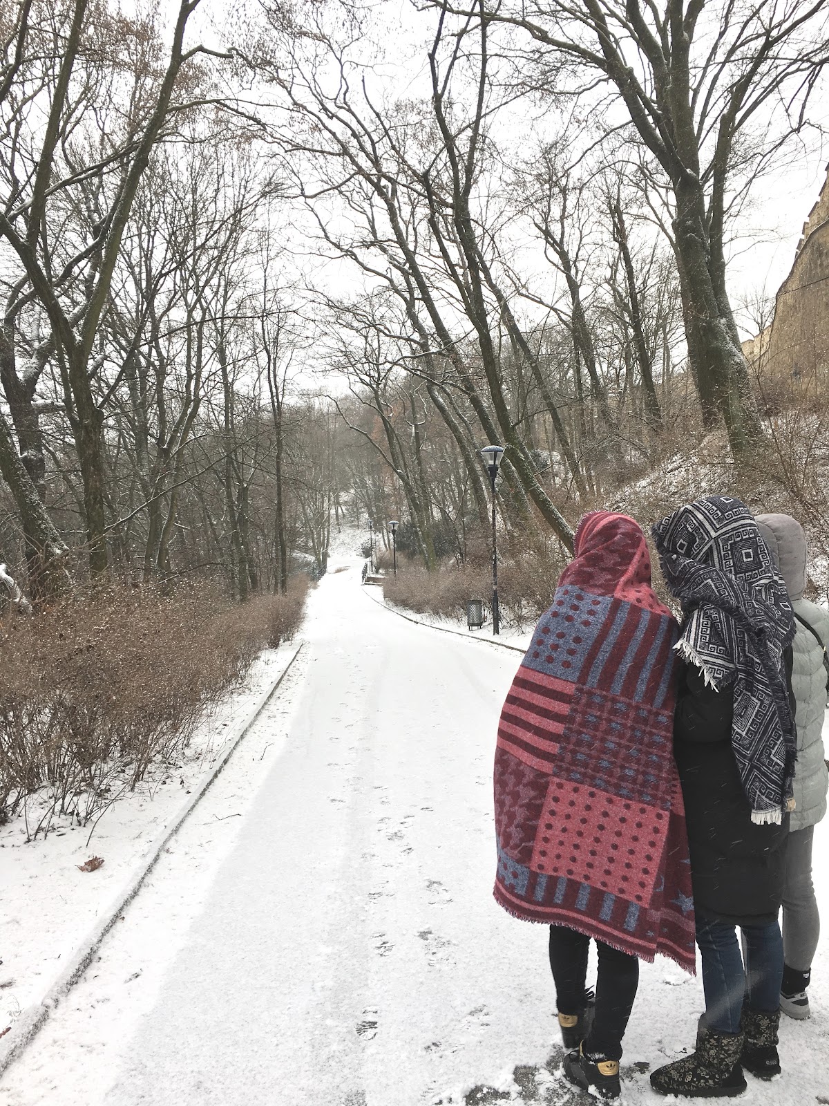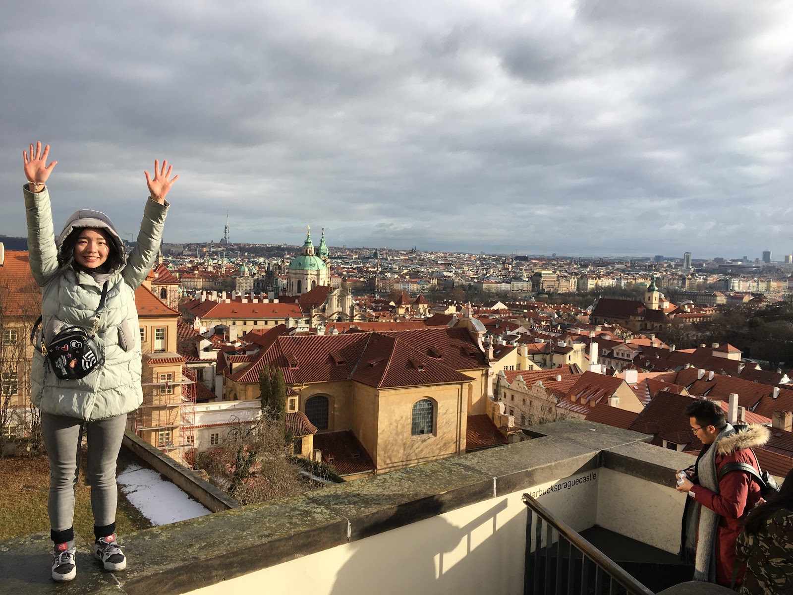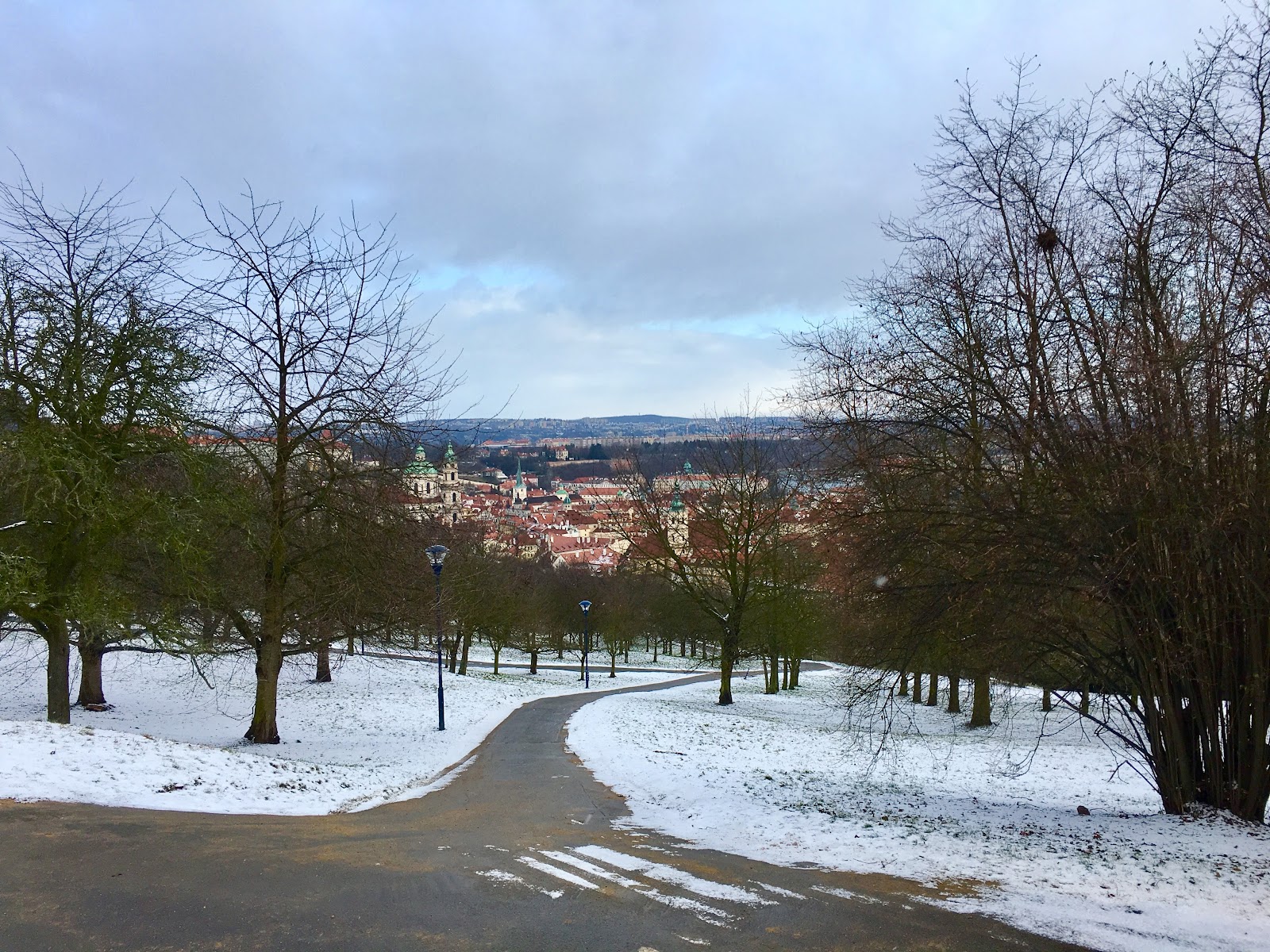 一出門遇到房東,說要開車出門,就直接載我們到我們要去的佩特任山,而且呢,到了就開始飄大雪,就是我想看到的白色世界的城市啊