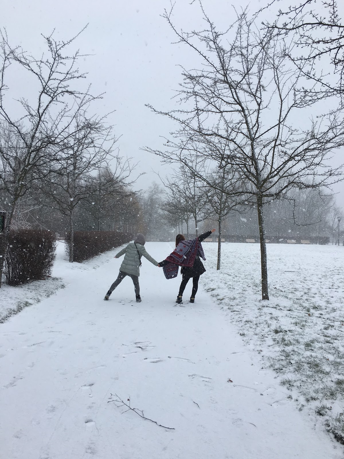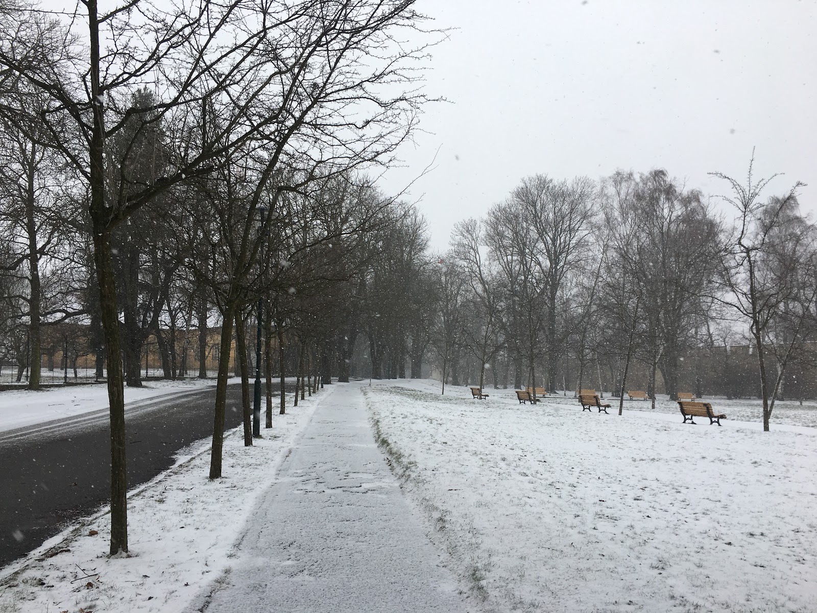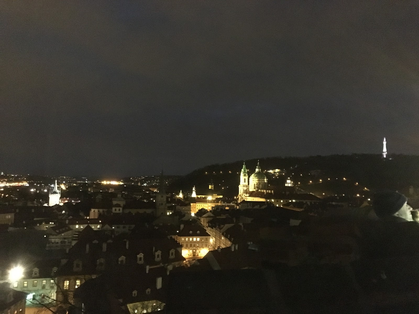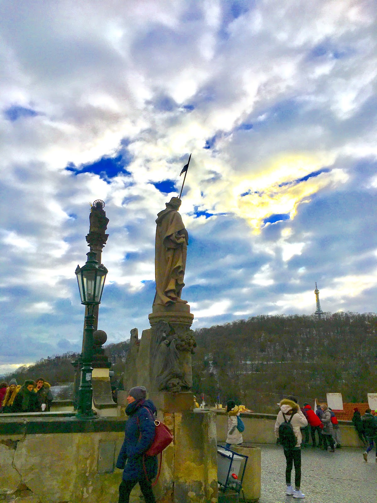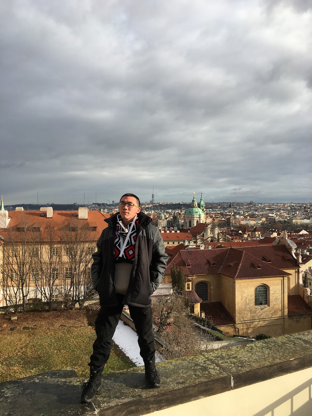 一出門遇到房東,說要開車出門,就直接載我們到我們要去的佩特任山,而且呢,到了就開始飄大雪,就是我想看到的白色世界的城市啊