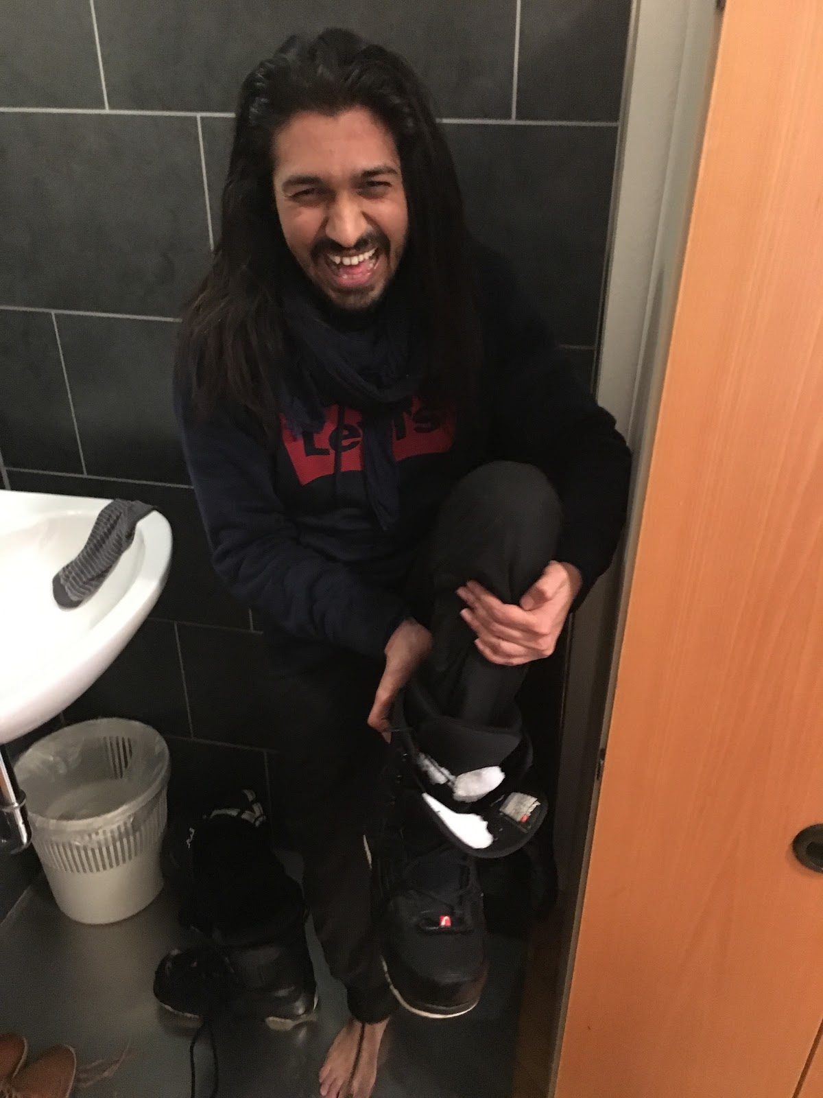 "so I have to walk all the way back, and it was snowing like fxck! I even threw the board cause it is really hard to hike in the snow and it just ran down the hill so I have to run for it."