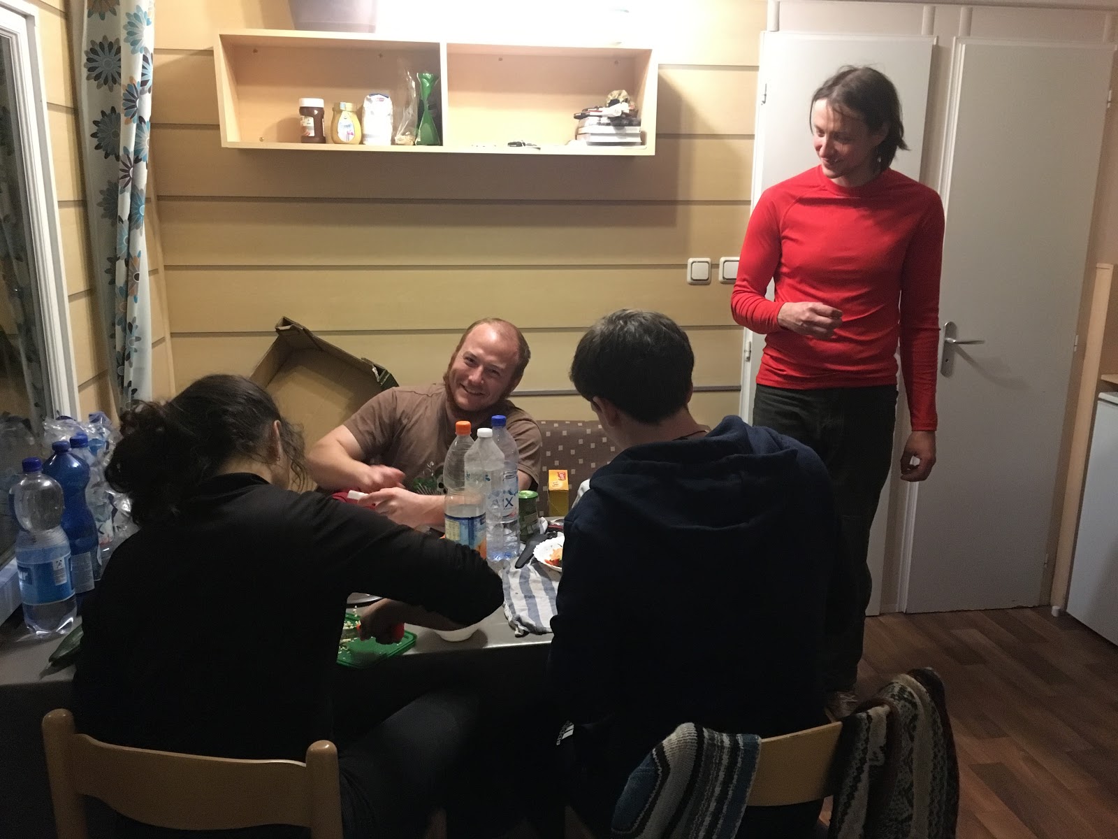 We started everyday shopping in the supermarket, then climb, cook, chat, and sleep.